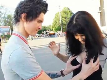 Rusya da komedyen Sam Nickel 2012 seçimleri öncesi Putin e mesaj göndermek için tam 1000 kadının göğüslerine dokundu.